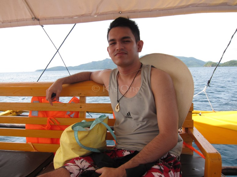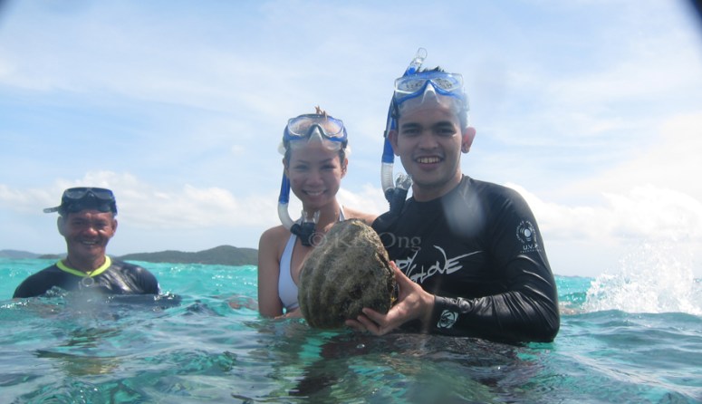 You always helped me get on and off the boat throughout the whole trip. You wore my large brimmed hat around your neck to stop it from getting blown awaaaaay! Moreover, you always asked how I was doing. You put sunblock on my back, babe! At Malcapuya beach, you rescued me from drowning may times (the current was strong that time) and you took pictures of me posing by the shore (hahaha). And you patiently tried to get that perfect photo of me swimming underwater! You also carried me on your back and had the camera’s timer set so we can have that moment captured. You helped me feed the fishes by the corals, and taught me how to fish even if I wasn’t able to catch any fish and don’t know how to fix the nylon strings which got tangled.